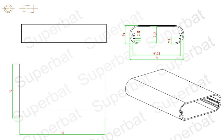Dimensions (outer):24mm(0.94")(H)x70mm(2.76")(W)x110mm(4.33")(L)