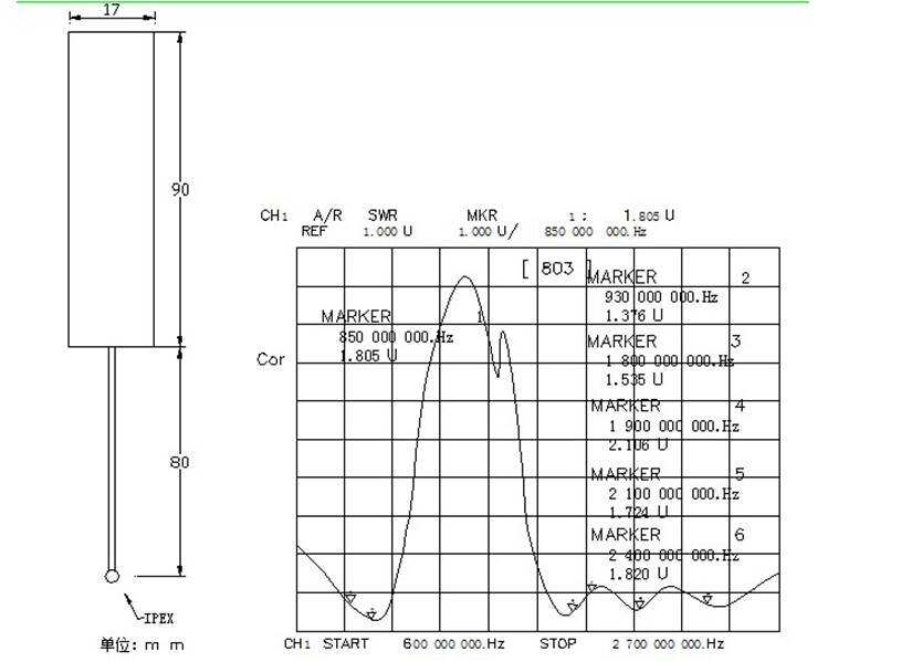 | Frequency Range: | 698-960/1710-2170/2500-2700 | V.S.W.R.: | ≤ 2.0 |
